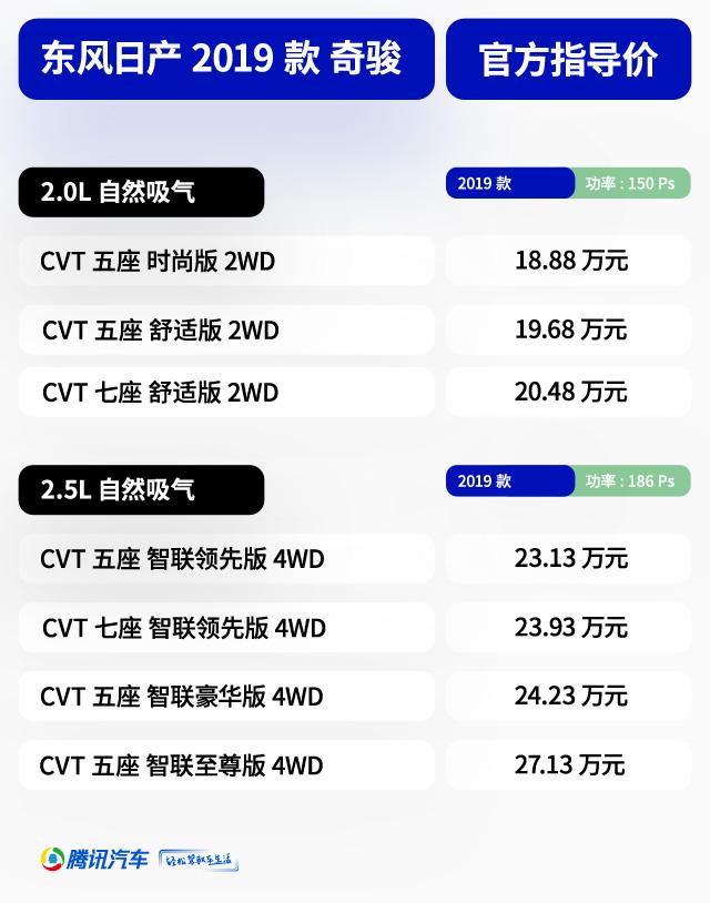 8月21日,东风日产2019款奇骏正式上市,共推出两种排量七款车型,官方指导价为18.88-27.13万元。此次为年度改款车型,主要是配置升级,提升产品竞争力。